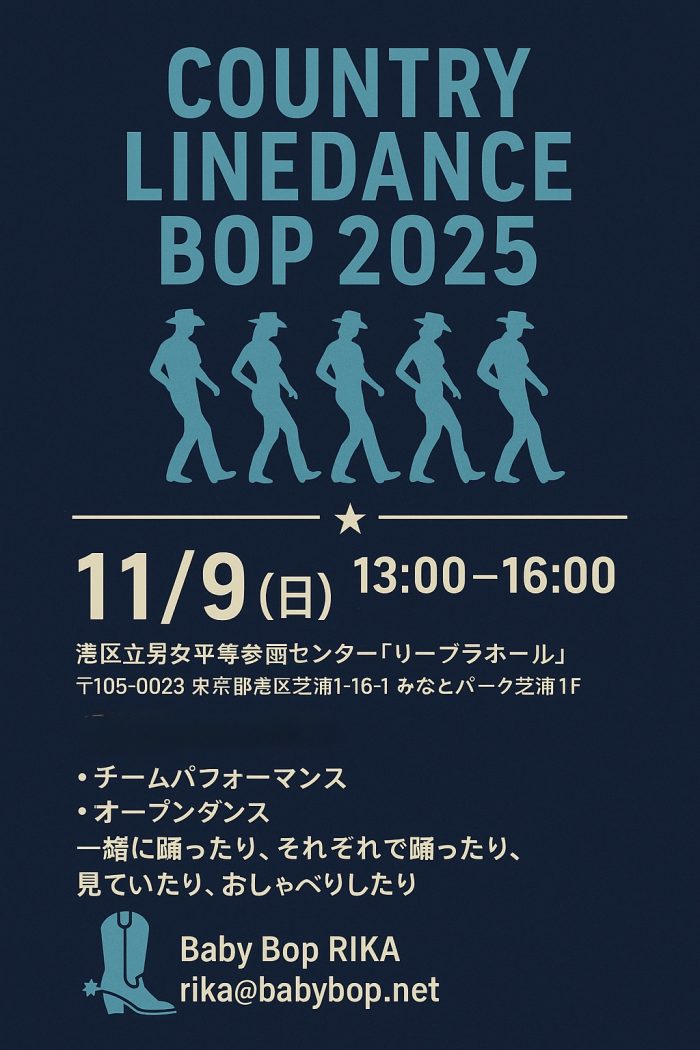 ★Country Linedance BOP 2025 2025年8月19日2025年10月19日 BabyBop rika 会場案内 共有:Facebook で共有するにはクリックしてください (新しいウィンドウで開きます)クリックして Twitter で共有 (新しいウィンドウで開きます)クリックして Google+ で共有 (新しいウィンドウで開きます)